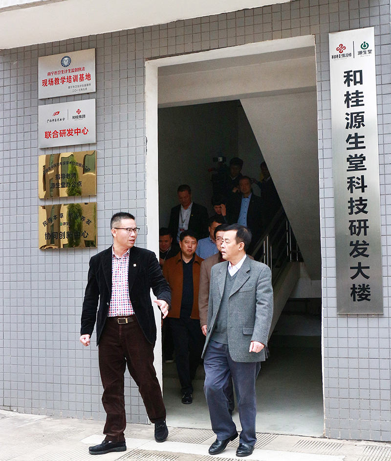 11月22日,自治區(qū)人大常委會(huì)委員、自治區(qū)黨委統(tǒng)戰(zhàn)部原常務(wù)副部長(zhǎng)劉長(zhǎng)林,南寧市委常委、統(tǒng)戰(zhàn)部部長(zhǎng)趙紅明,南寧市委統(tǒng)戰(zhàn)部副部長(zhǎng)、工商聯(lián)黨組書記李忠南等領(lǐng)導(dǎo)率隊(duì)蒞臨源生堂本草養(yǎng)發(fā)中心總部考察調(diào)研并宣講十九大精神,廣西和桂集團(tuán)總裁黃偉文,廣西和桂集團(tuán)副總裁、源生堂執(zhí)行總經(jīng)理舒志華攜各部門精英熱情迎接并陪同考察。