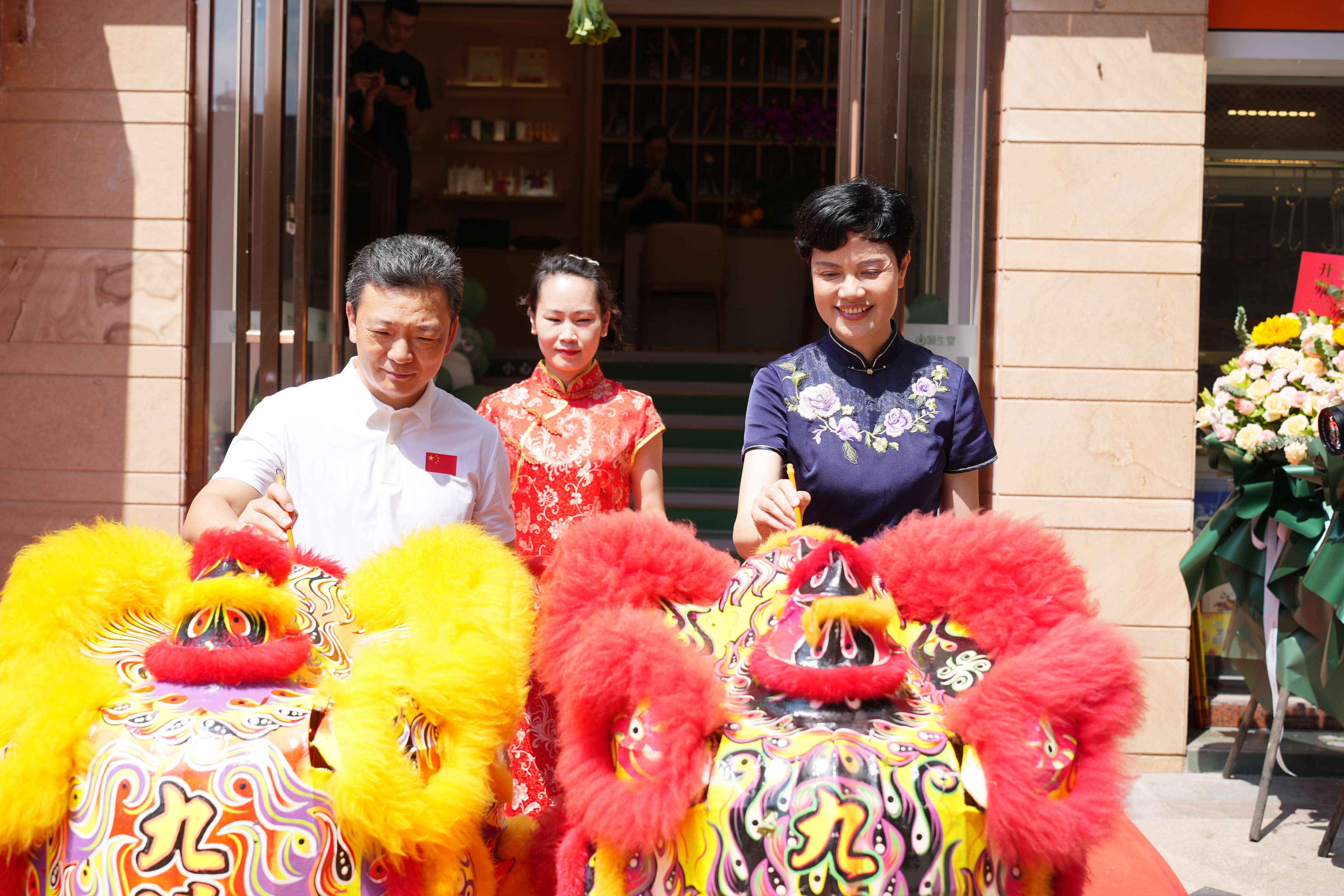 公司領(lǐng)導(dǎo)與嘉賓一同為醒獅點(diǎn)睛、為開業(yè)慶典剪彩,禮花繽紛、鑼鼓齊鳴、醒師飛舞,為東盟盛天地店開業(yè)博取好彩頭,開業(yè)興隆,大吉大利!